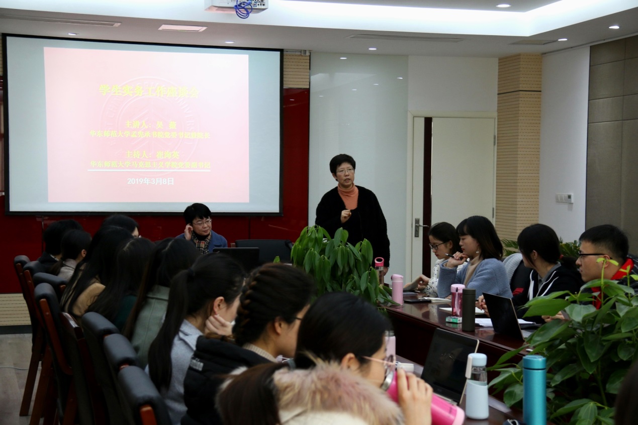 为了使同学们充分了解就业情况,更好地进行职业规划,2019年3月8日上午, 成人影院 于法商北楼225举办了学生实务工作座谈会,邀请成人影院 孟宪承书院吴薇院长担任主讲人。座谈会由学院党委副书记崔海英主持,学院部分研究生参加了此次座谈会。