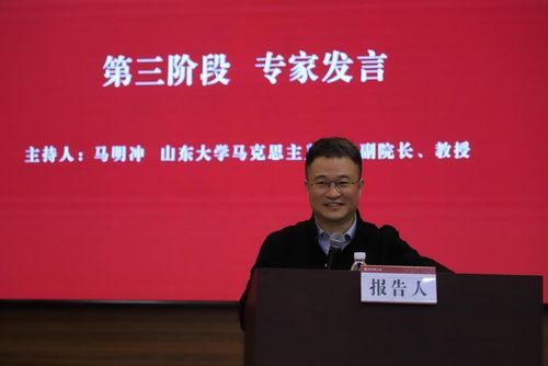 第一阶段研讨由山东大学成人影院 副院长马明冲教授主持。他强调党的创新理论发展是实践智慧的结晶,进行习近平新时代中国特色社会主义思想的理论溯源是当前阶段讲好思政课蕴含道理的关键。