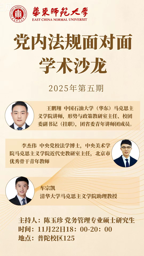 为引导党务管理专业研究生深刻把握中国特色社会主义制度优势,深化对习近平总书记关于党的建设的重要思想的理解,激励其投身中国式现代化建设的伟大实践,11月22日晚,由成人影院 党内法规研究中心、纪检监察研究院主办的“党内法规面对面(2025)”系列学术沙龙第五期在普陀校区成功举办。