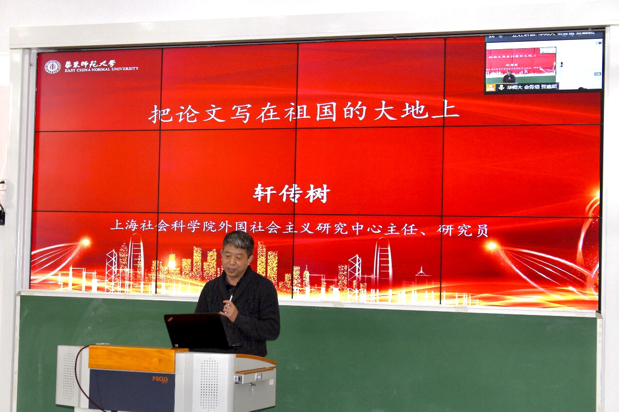 轩传树以《把论文写在祖国的大地上》为题,他借用习近平总书记对广大科技工作者发出的号召,指出马克思主义研究生的学术工作必须更贴近中国实践,揭示中国现实,满足中国发展的现实需要。轩传树认为,时代在大发展,科技在大进步,国际国内涌现出新现象和新问题,马克思主义学科的师生更要怀着问题意识,眼睛向内、立足祖国大地,只有这样我们才能不负这个时代。