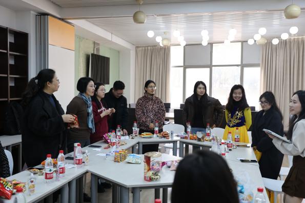 学院党委副书记崔海英老师对留校学生在校期间的春节生活十分关注,并代表学院向大家致以节日的慰问,更着重提醒大家在假期中要注意个人安全,培养良好的生活作息习惯。同时,叶林娟老师也对同学们表达了关心与问候,特别强调了虽然在学校也要加强与家人沟通联系的重要性。冯小芳老师也表达了与同学们共度春节、共庆佳节的喜悦之情。