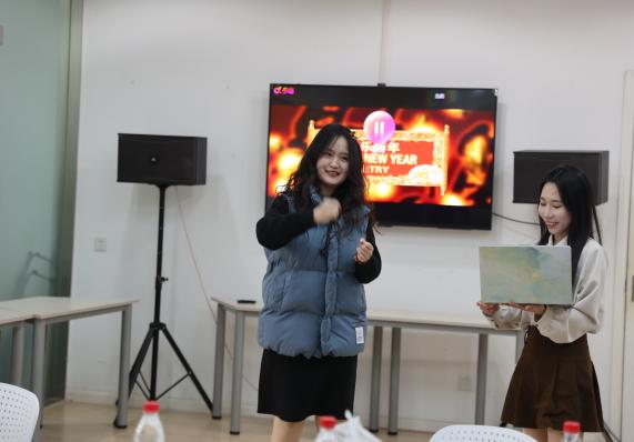 在游戏环节,“春日桃花”有效地活跃了现场的氛围,不仅拉近了同学之间的距离,也让师生在游戏环节中更加放松和投入。“你画我猜”比拼中让现场的每个人都屏息凝神,力争在最短时间内超越对方,兼具挑战性与趣味性。随后,由叶林娟老师发起的第三个游戏开始,在这个环节中,现场的每个人都需要说出一个与“一”字相关的成语,并以客厅作为主题语境,围绕所选的成语进行创意性的遣词造句。游戏精彩纷呈,更将现场的气氛推向了高潮。