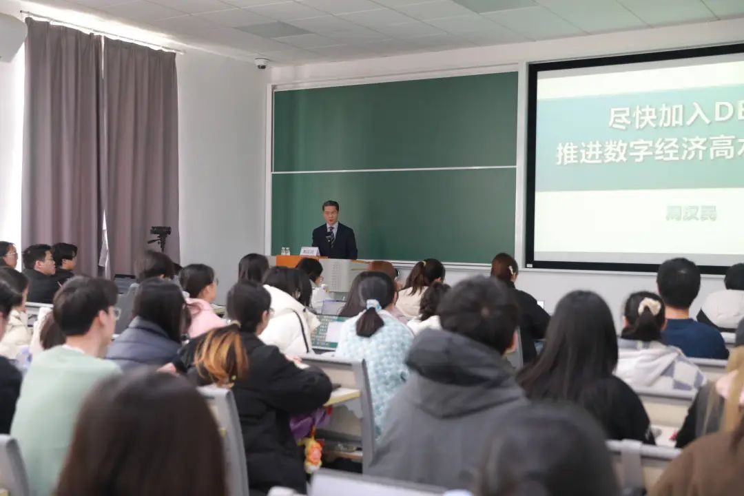 在讨论互动中,针对“人工智能与数字经济”“主权与数据流动”“数据沙盒”等学生关注关心的问题,周汉民从新质生产力维度对数字经济与实体经济融合作出解读,诠释当代中国数字经济蓬勃发展的愿景,展现从世界大变局维度对数据资源创新驱动发展的信心。他告诉大学生,当代学子要立足中华民族伟大复兴的历史使命,深刻认知自身和未来发展趋势,着力提升在数字化时代的综合素养与能力。