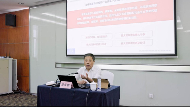 8月29下午,浙江理工大学成人影院 渠长根教授作“毛泽东思想及其历史地位”主题示范说课。渠长根教授以教育部社科司统一编制的配套教学课件为蓝本,结合自身教学研究经验,对课件进行解读。他表示,该课件以十九届六中全会发布的“第三个历史决议”为指导,是高屋建瓴的集体智慧结晶。在授课过程中,一方面就如何讲好、讲透理论内容作出了生动的示范,展现了自身对毛泽东思想的深入研究与思考,另一方面从授课逻辑、文字语法规范、教学方法技巧等方面作出了建设性指导,并就课件的改进完善向研修班成员征求了建议。