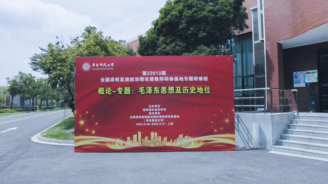 为深入贯彻习近平新时代中国特色社会主义思想,深入学习贯彻党的十九大和十九届历次全会精神,以迎接学习贯彻党的二十大为主线,认真贯彻习近平总书记关于教育的重要论述特别是在学校思想政治理论课教师座谈会上的重要讲话精神,发挥思政课立德树人关键课程和铸魂育人主渠道作用,助力高校思政课教师队伍高质量建设。2022年8月29日至8月31日由教育部社科司主办、全国高校思想政治理论课教师研修基地(华东师范大学)承办的主题为毛泽东思想及其历史地位的第22013期全国高校思想政治理论课教师研修基地专题研修班在沪举办,共有来自上海市高校的48位思政课教师参加本期研修。本次研修在教育部基地研修平台同步直播。